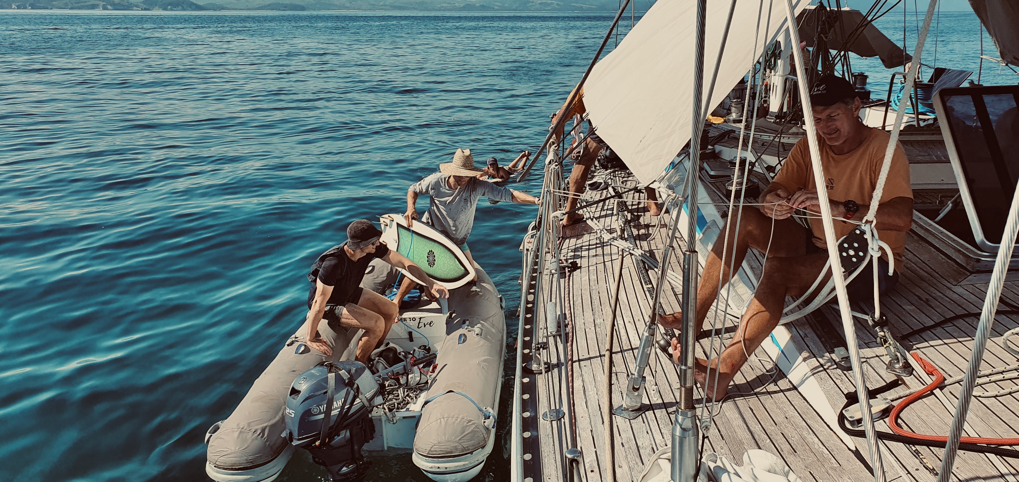 After a day on the small island we took shelter in a bay on the mainland. A few of the crew went ashore to have a look around and the local tribe popped out of the jungle to say hi and greeted everyone with smiles. They took a few photos with the crew and then carried on with their day. Eve sat in the middle of the bay, peacefully swinging at anchor, whilst local fishing canoes surrounded the boat, all out to catch their food for the day.