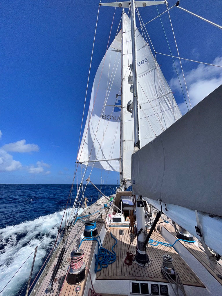 We had the same routine for every sunset and sunrise - The kite got packed away just before the last light, and then relaunched again in the morning as soon as the sun finished its colourful rising performance. The reason why we didn’t fly the kite through the night is because we never felt the need to take the risk… unless we were racing. It also gave our crew of 4 a chance to fully rest and relax through the night watches, with the boat still moving along nicely at around 8-9knots in an average of 18knots of breeze. It is great to push the boat and tests the limits of your sail power and speed, and we highly recommend it, however there is a time and a place, and for us we were extremely happy and content to be cruising at our own pace, thousands of miles offshore with limited crew… Even if that did mean arriving a day later.